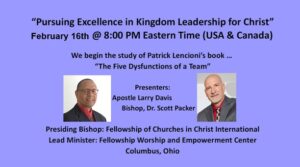 The Five Dysfunctions of a Team was specifically as a tool for “team building” in a corporate setting. However, the content and message in this book are excellent for Church Leadership & Ministry Teams. As we integrate biblical foundations, pastoral realities, and ministry application while remaining faithful to Patrick Lencioni’s framework in this book, this teaching and training will benefit all who will participate. See you soon!